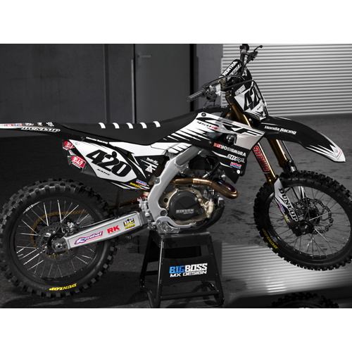 Please note that the designs shown are for illustration purposes only and whilst we endeavour to keep as close to these as possible logo placements may change slithtly due to the differences in modles and the angles of the plastics. Graphics kits do not include plastics, seat covers, mid forks or the bike.