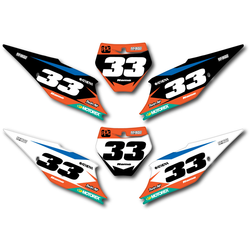 KTM 50cc MANTRA STYLE mx number plate decals can be customised by adding your selection of industry logos or your own company logos (Artwork for company logos must be supplied in a useable format ai eps or original artwork pdf's) You can change the colour on these motorbike number plates to suit your specific race class or simply the preference you desire. Full proofs will be sent prior to printing at no extra cost.