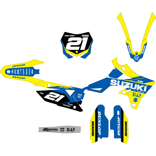 DESCRIPTION: All Full sticker kits for SUZUKI 50cc SHRED BLUE STYLE model dirt bikes can be customised with your Name / Number and Choice of logos. Fill out the details below and we will get to work on modifying the design to your specifications.If you like the design of this kit but want to change colours around we can do this free of charge just let us know in the comments section. Number styles can also be specified in this section.